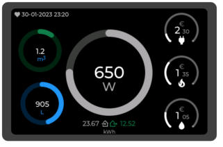De NRG Monitor is een compact 3.5 inch tft display waar actueel Elektra/water/gas/warmte verbruik en